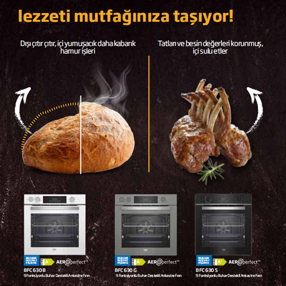 - SteamAssisted buhar destekli pişirme ile daha kabarık